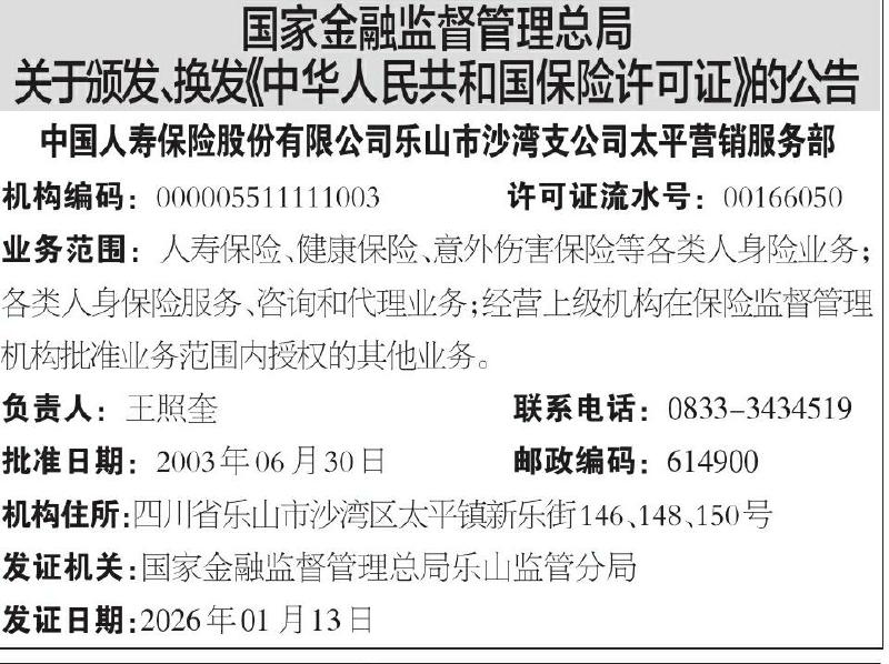 ·国家金融监督管理总局关于颁发、换发《中华人民共和国保险许可证》的公告