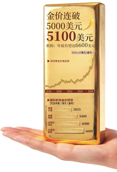 1月26日,在亚市早盘突破5000美元大关后,国际现货黄金价格继续凶猛上攻,下午再度突破5100美元关口,创下新的历史纪录。此前,国际现货白银价格也出现飙涨,于26日下午一度突破110美元关口,同样属于历史首次。