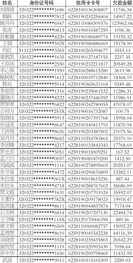 截止到2026年2月7日,下列持卡人未遵守与我行签订的《中国邮政储蓄银行信用卡(个人卡)领用合约》的约定按时还本付息,已构成违约,现我行通知以下持卡人,请务必于公告之日起15日内还清我行信用卡本息及费用(具体金额以还款日当天为准)。否则我行将采取法律措施向您追偿,依法向人民法院提起诉讼,收回拖欠本息、逾期费用及我行为实现债权而产生的一切费用。联系电话:0516-85095580 特此公告。 中国邮政储蓄银行股份有限公司徐州市分行 2026年2月13日