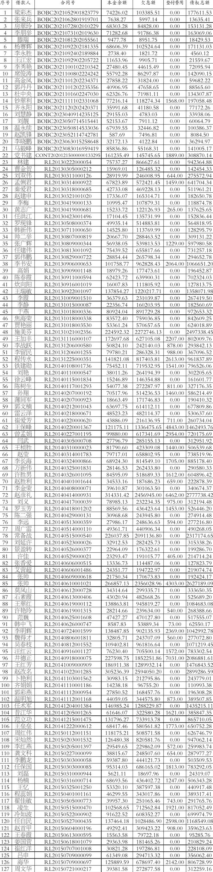2.本公告当中内容如有错漏,以借款人及相关责任人等相关承债主体、清算主体(如有)原已签署的交易合同为准。