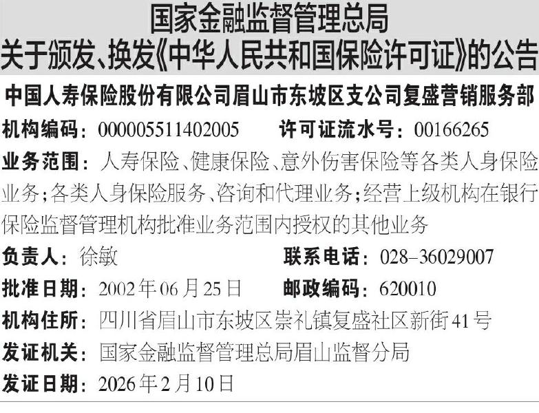·国家金融监督管理总局四川监管局关于换发《中华人民共和国金融许可证》的公告