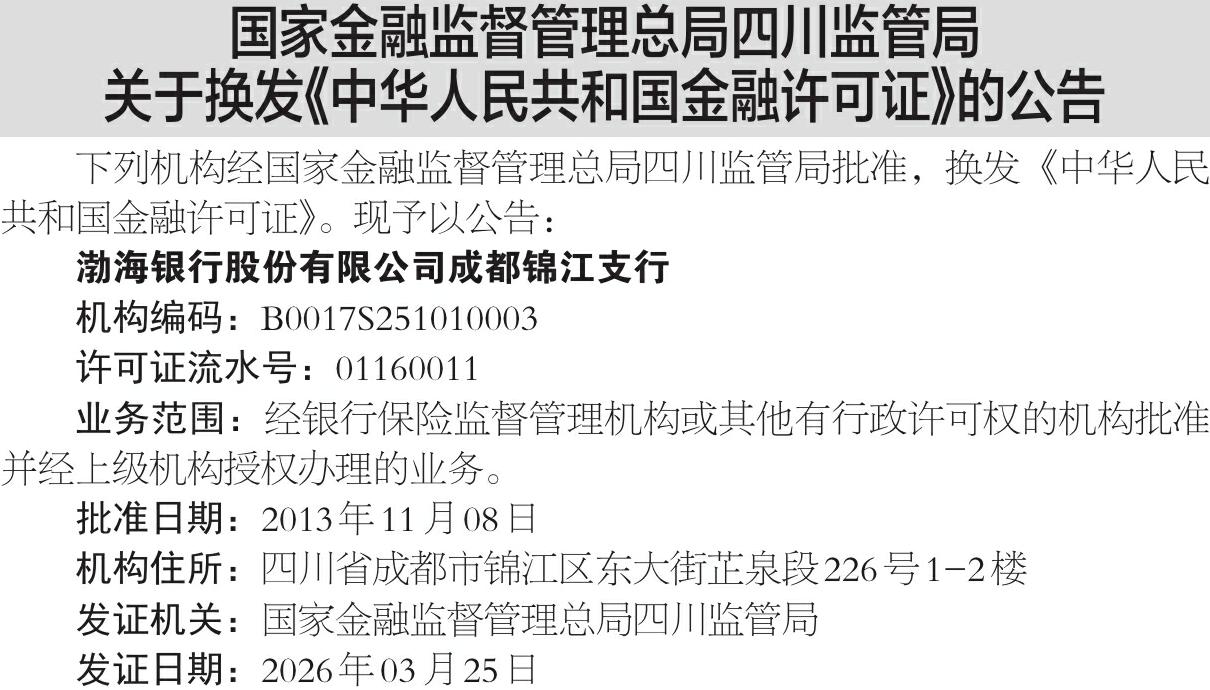 ·国家金融监督管理总局四川监管局关于换发《中华人民共和国金融许可证》的公告
