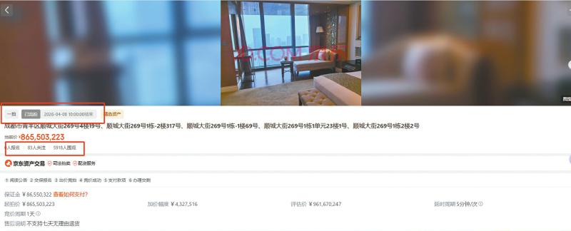 京东资产交易平台显示,此次拍卖于4月7日10时开始,至4月8日10时结束。但直至拍卖落幕,该标的物始终“无人问津”——0人报名、83人设置关注、近6000人围观。