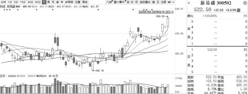 市值首次站上5000亿大关,股价创历史新高,成为上市川企历史市值第二名。4月10日,新易盛(300502)一天之内达成了多个“成就”。而市场的声音从来都不是一边倒,有人欢呼股价大涨赚钱的同时,也有理性的声音出现。