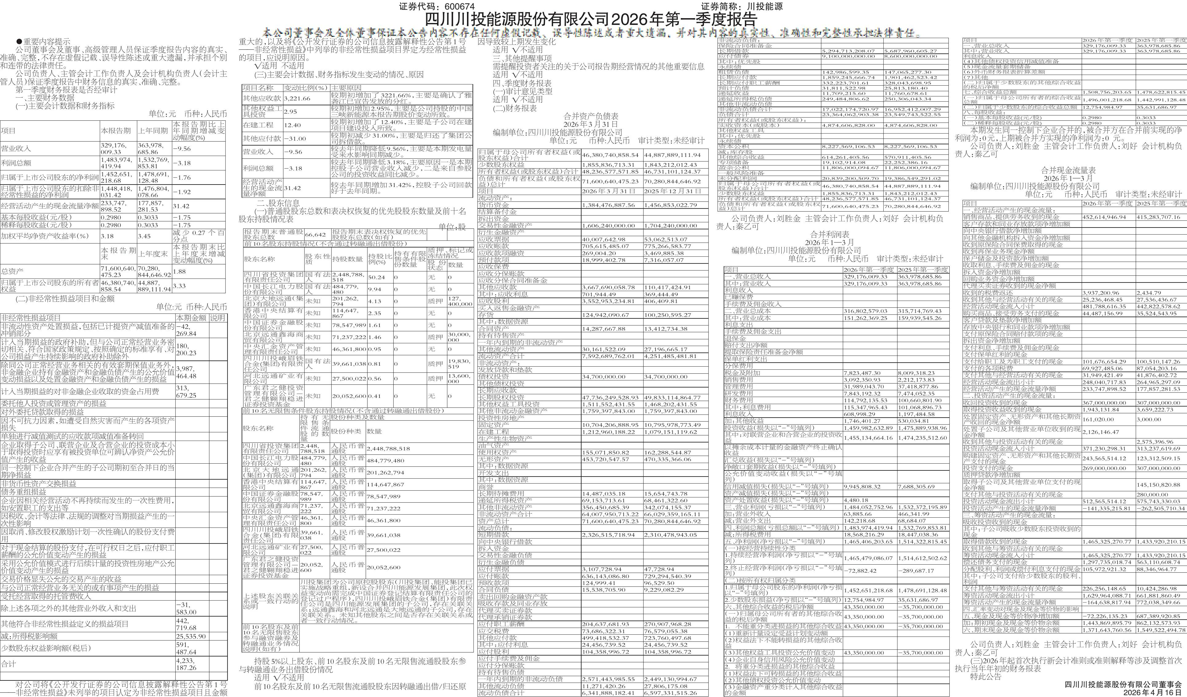 • 四川川投能源股份有限公司2026年第一季度报告