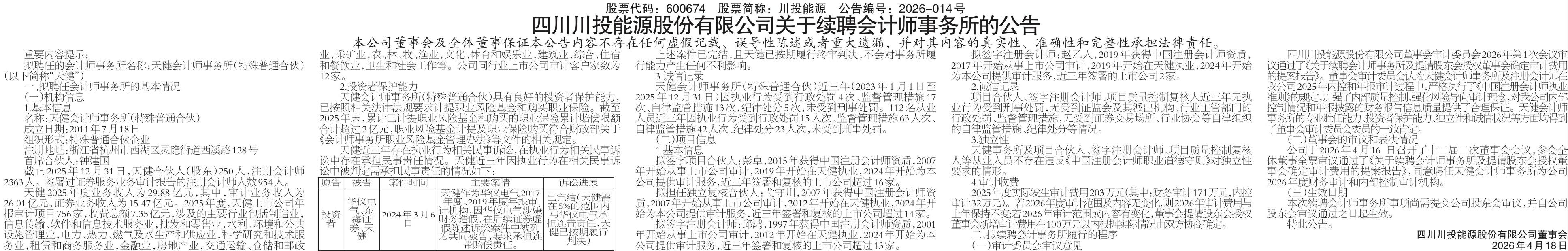 • 四川川投能源股份有限公司关于续聘会计师事务所的公告
