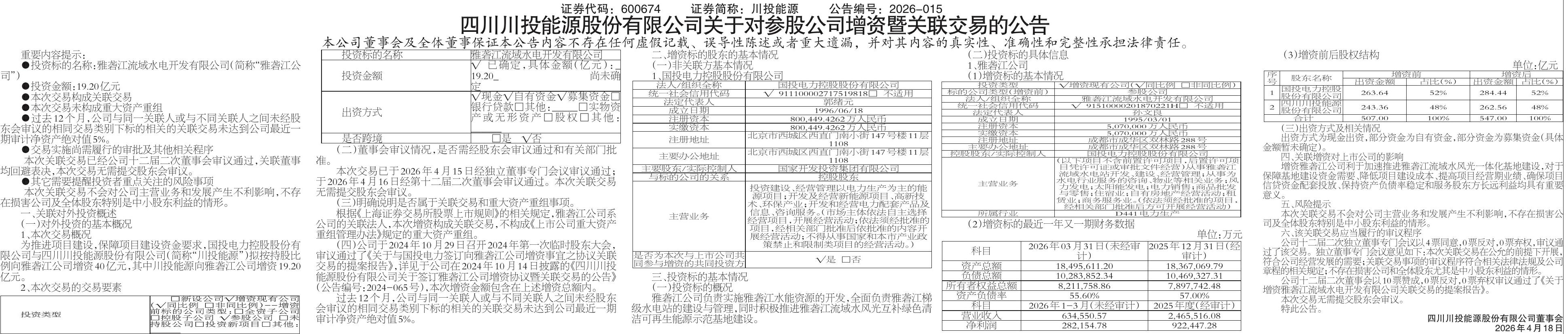• 四川川投能源股份有限公司关于对参股公司增资暨关联交易的公告
